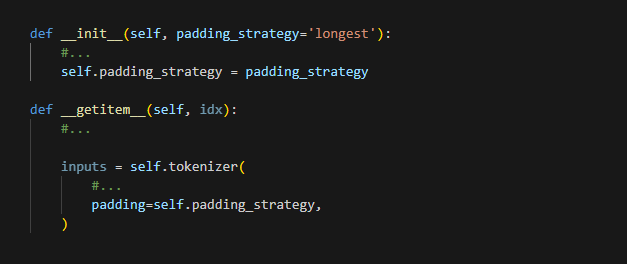 지금 생각해 보면 padding 옵션을 좀 더 자유롭게 했어야 하지 않았나 싶습니다. max_length의 경우 텍스트의 길이가 짧은 경우면 메모리 사용 효율이 떨어질 수 있기 때문입니다. 예를 들면 아래와 같이 말이죠.